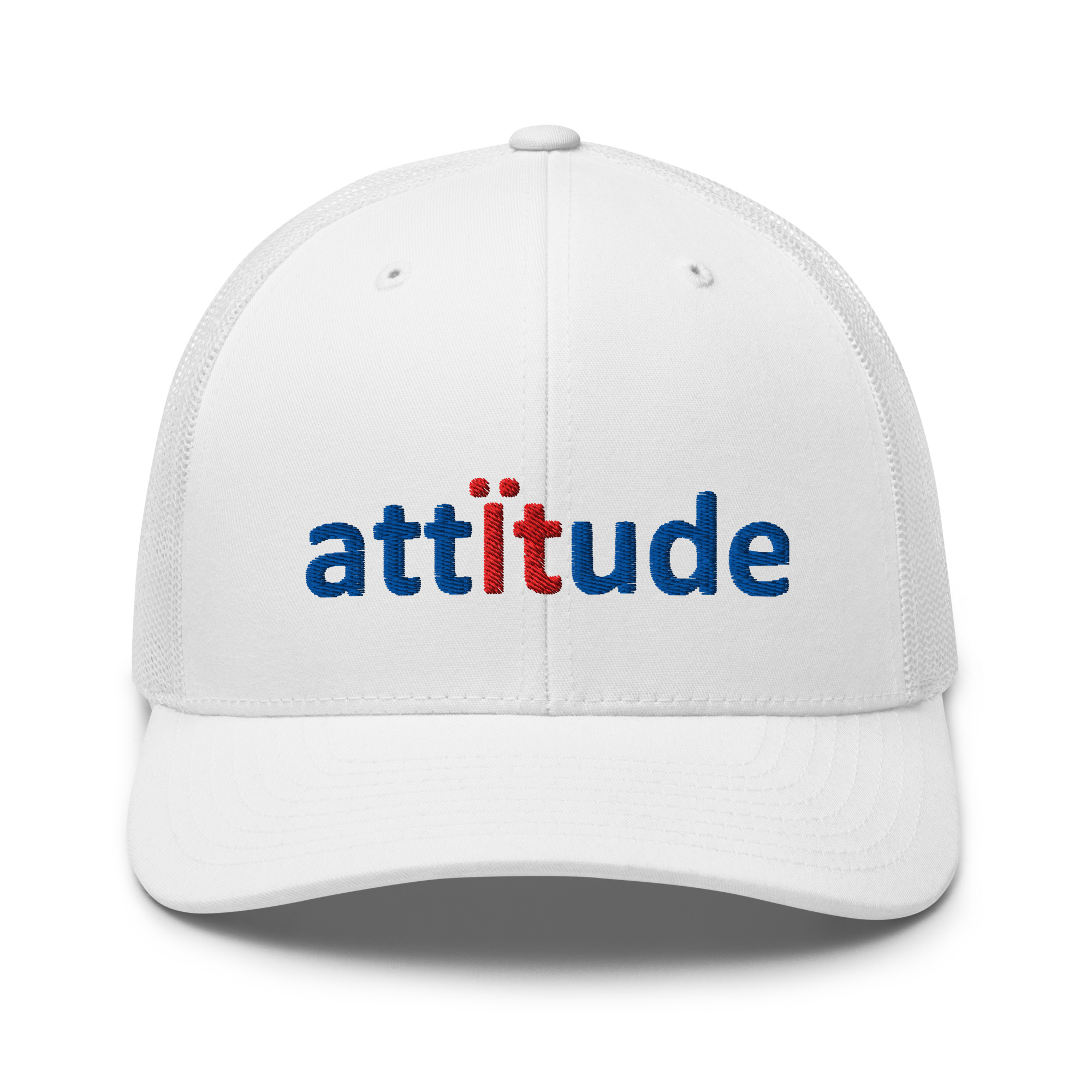 Wear your attitude on this six-panel trucker cap.